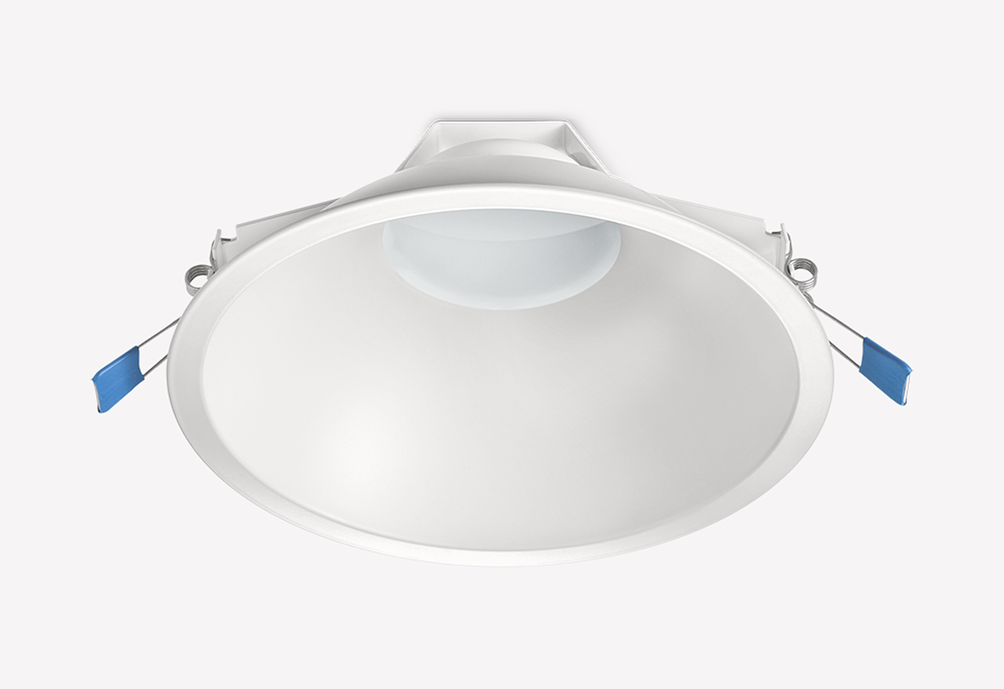 Witte aluminium behuizing, binnenzijde reflector gematteerd. Voorzien van geïntegreerde led, standaard in 3000K en 4000K, met montageveren. Inclusief driver en voorzien van GST 18i3 male connector.