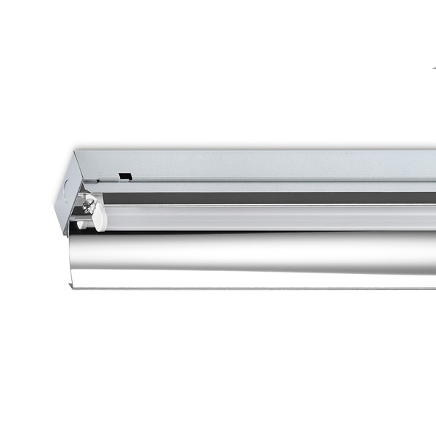 Geschikt voor rijmontage en ophanging aan ketting. Voor rijmontage koppelstukken leverbaar. Behuizing is gemaakt van verzinkt plaatstaal. Hoogwaardige, hoogglans aluminium en diepstralende reflector.