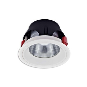 Spot/Downlight van MacBright met een kunststof ring om een aluminium behuizing van die-cast met een heldere glazen afscherming. Mat wit.