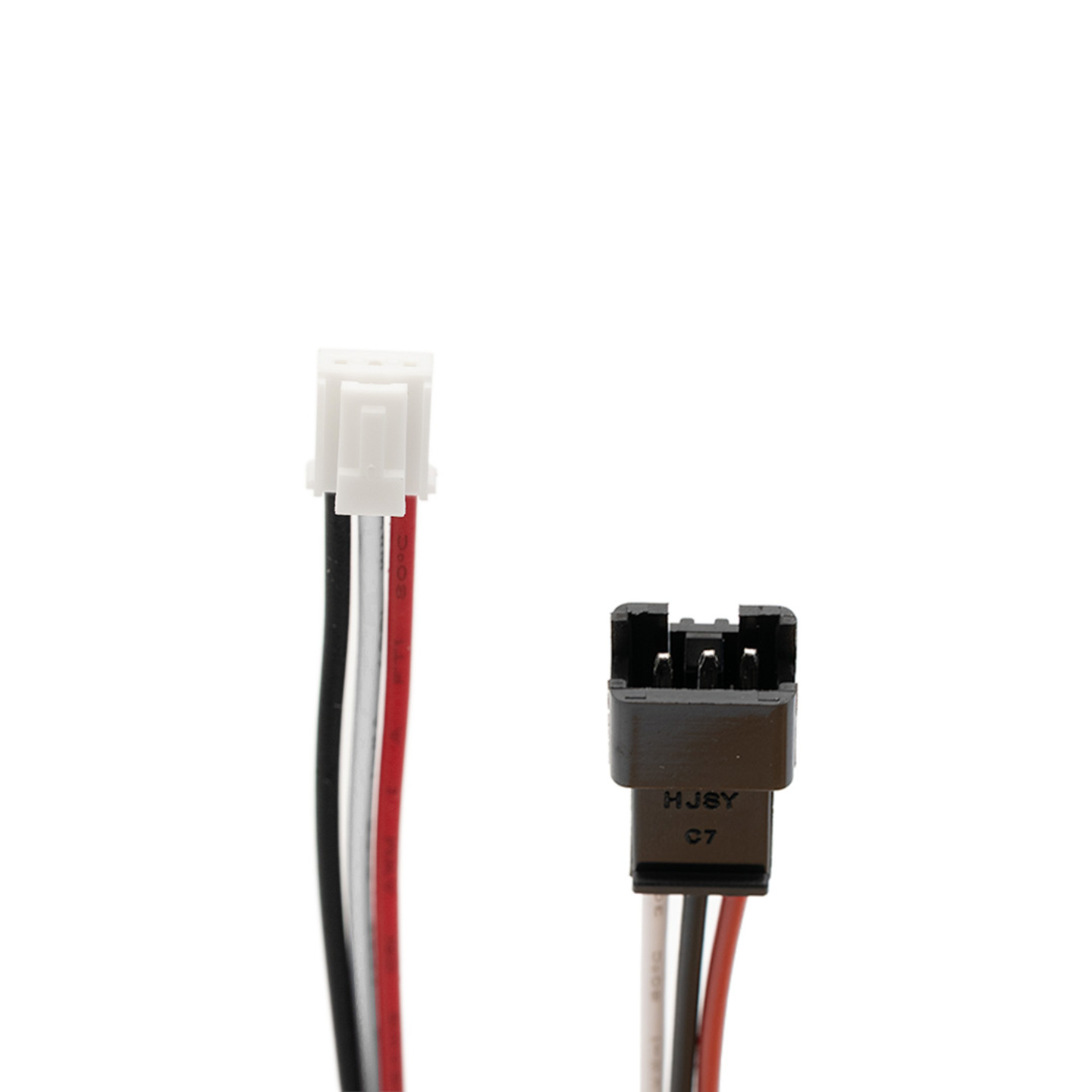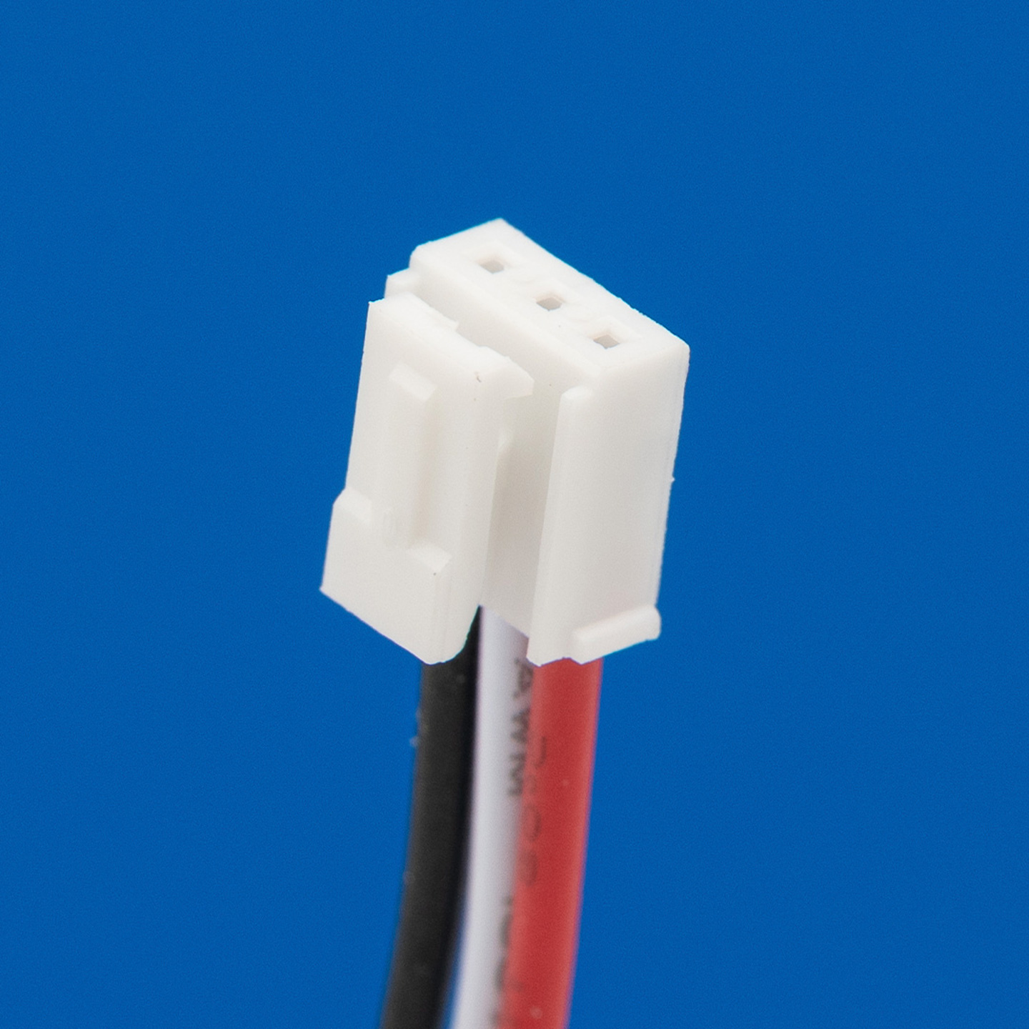 Connector 3 draden rood links / wit midden / zwart rechts (8 cm) voor lithium accu's.
