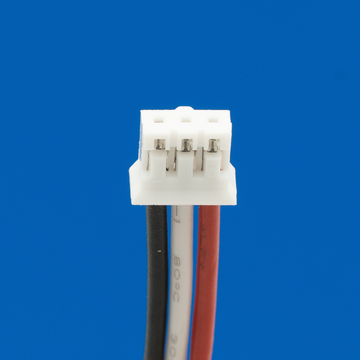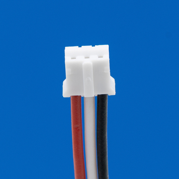 Connector met 3 draden rood links / midden wit / zwart rechts (18 cm) voor lithium accu's.