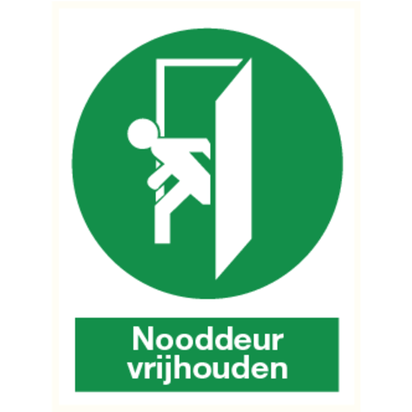 Vinyl sticker Nooddeur vrijhouden, 150 x 200 mm, veiligheidsnorm: NEN-EN-ISO 7010.