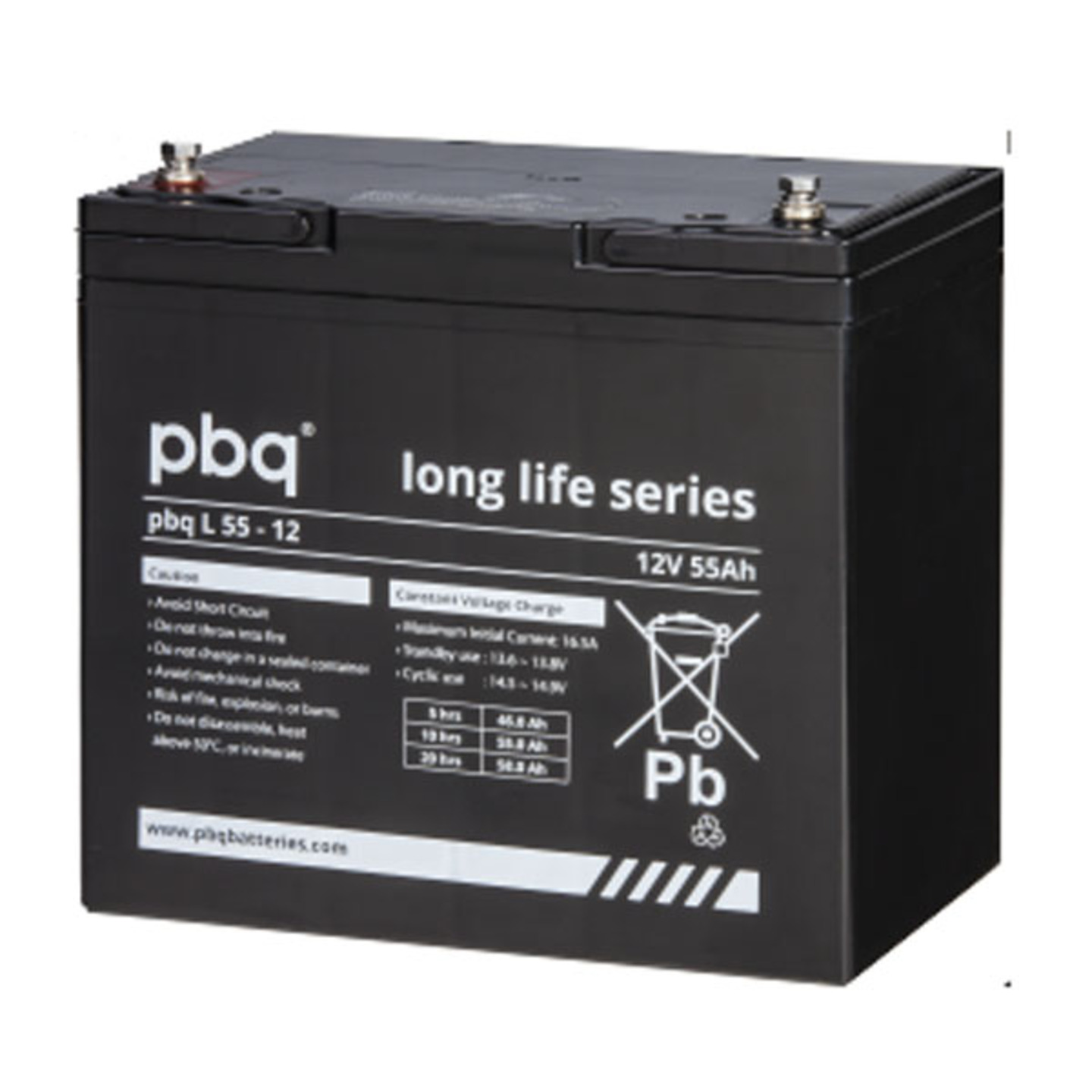 AGM loodaccu 12/55Ah, vervangend artikel voor CPL55-12I.Accu’s uit de pbq Long Life serie worden gebruikt in toepassingen waarbij een extra lange levensduur vereist is. De pbq Long Life serie is een reeks accu’s met een ontwerplevensduur van 10 tot 12 jaar volgens de EUROBAT norm, speciaal ontworpen voor stand-by toepassingen zoals noodstroomsystemen of autonome energiesystemen.