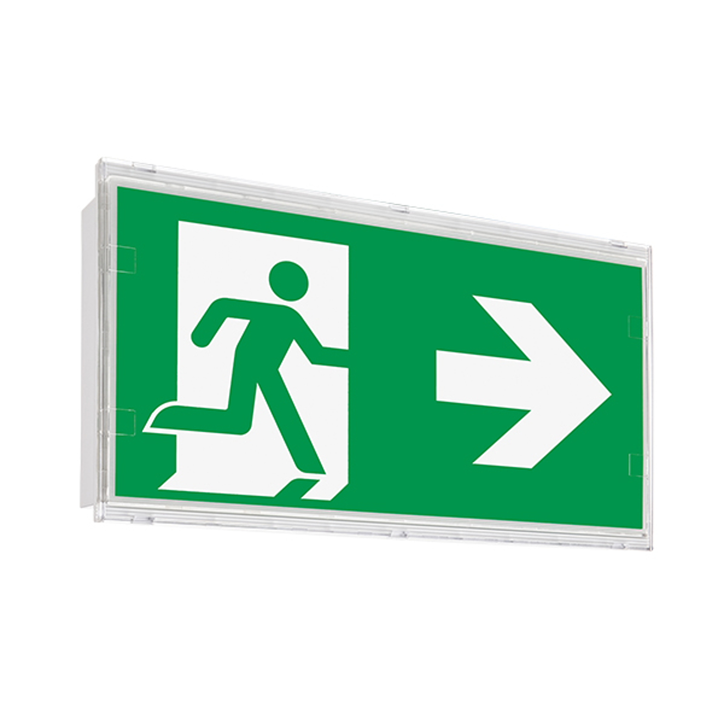 Aantrekkelijke, moderne IP54 nooduitgang-armatuur van wit polycarbonaat en heldere afdekking voor wandmontage. Eenvoudig te installeren dankzij schroefloos kliksysteem. Inclusief pictogrammen set en voorzien van een 1 Watt LED-bar. Goed voor 100.000 branduren en 5 jaar garantie. 1 uur stand-by tijd. Zowel enkel- als dubbelzijdig te verkrijgen.